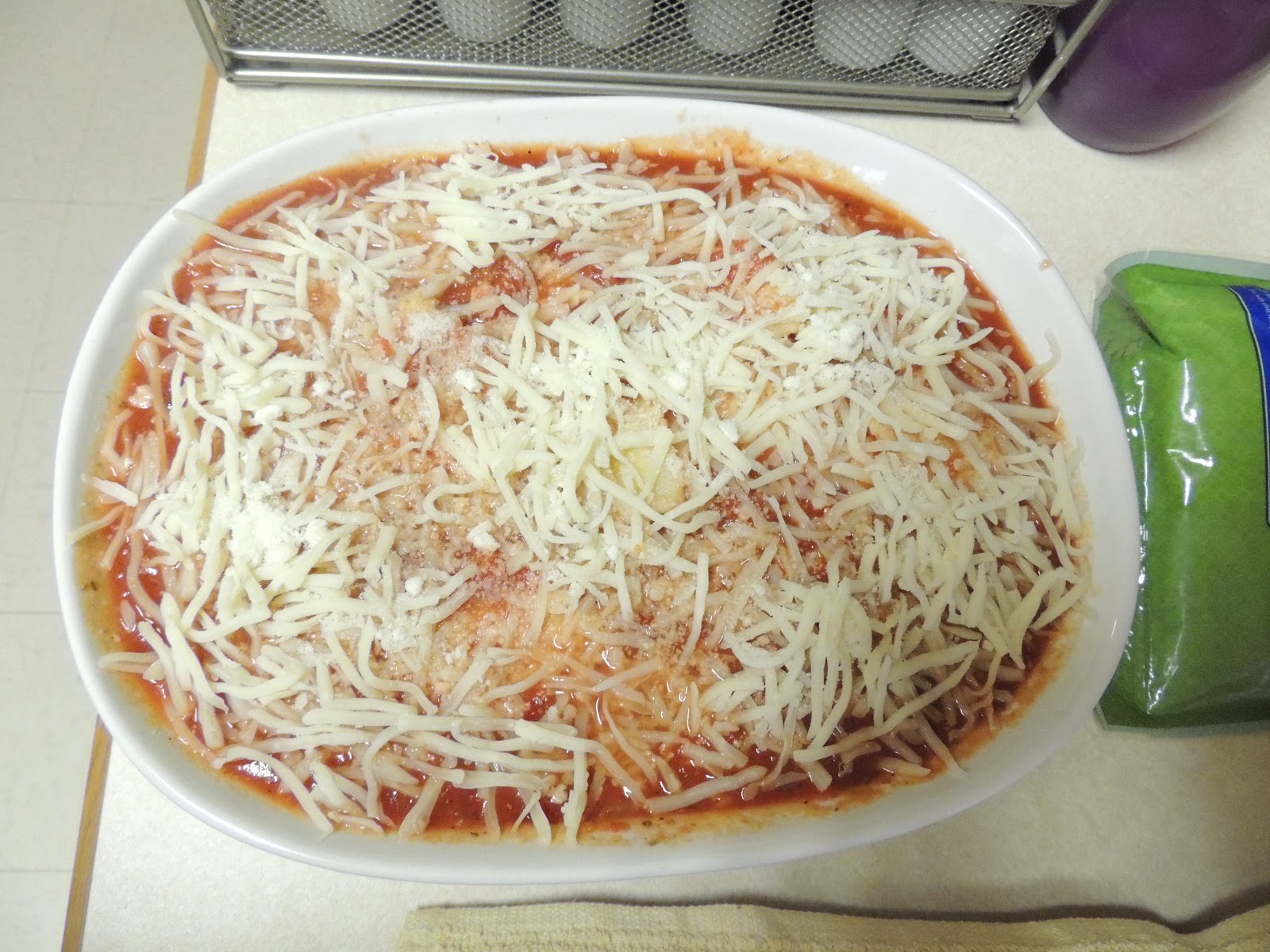 place in a baking tip and top with the rest of the mozzarella cheese and parmesan cheese. Bake for 20-25 minutes at 425 degrees